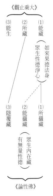 在此三義之中,《大乘止觀》的能生藏和《佛性論》的三義之任何一個,都不能相當。可是,在本書之中的能生藏,它的作者對它用力最多,如前面所引,特別舉了三種經語,用作論據的證明。