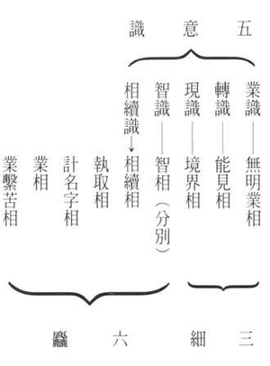 再回到《起信論》所立五意識之下的意識,也叫作相續識,又名為分別事識。此處的相續識,和五意之中最後的那個相續識,是同一個心相,要不外乎指的六識而言。