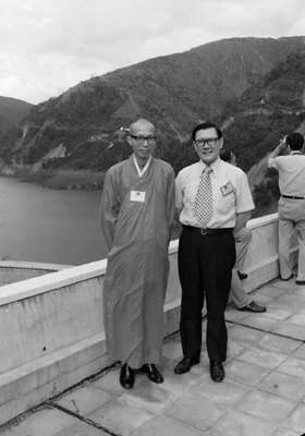 ▲作者與國建會接待組組長馬鶴凌先生合影於臺中橫貫公司的德基水庫