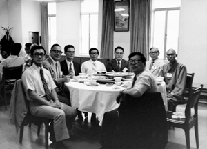 ▲學術研究環境小組於教育部午餐,左起:陳履安、田寶代、林清江、黃文宏、王振鵠、諸家俊、作者、劉岱。