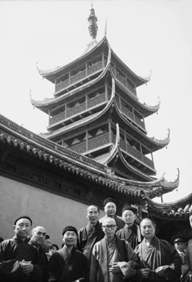 ▲與山頂諸執事合影,正後為支雲塔,左為大聖殿。
