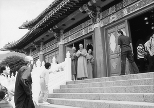 傷,住進醫院,所以放棄了當天上山的計畫。有一位居士對我說笑:「法師有福,所以我們有車坐了。」我倒不敢做如此想。可能也會有人說,因為我去訪問大嶼山,而使得大陸的一位高幹摔倒重傷,我的罪過就大了。這應該歸為因緣,