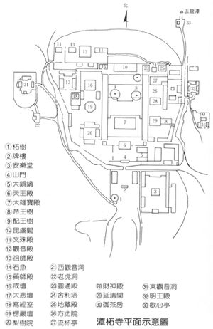 這段文字使我們知道潭柘寺的建築布局,在有規則中也雜著無規則的布局。