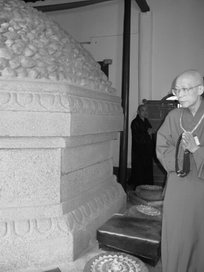 ▲作者繞慧遠大師塔三匝,體驗大師悲願。