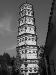 我一向以為是在盧山的山裡或是在山峰環繞的某一處山拗裡才能體會,在平地或山麓是體驗不到的。想不到身歷其境之後,才發現站在西林寺仰面朝著廬山頂的牯嶺鎮的方向端視,就可以看到群峰和巒嶺,起起伏伏,剎那間也感覺到自己彷彿就是身處在山中。